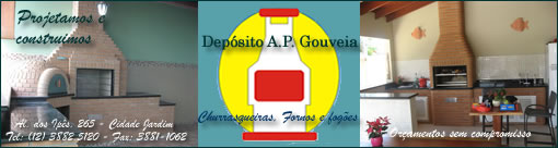 Depósito A.P. Gouveia Churrasqueiras, fogões, fornos e piscinas. Al. dos Ipês, 265 - Cidade Jardim Tel: (12) 3882.5120 - Fax: 3881-1062